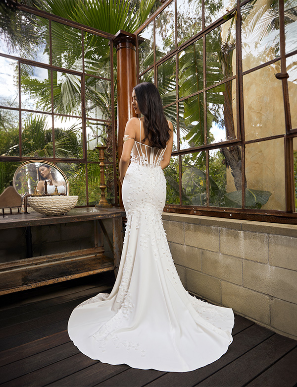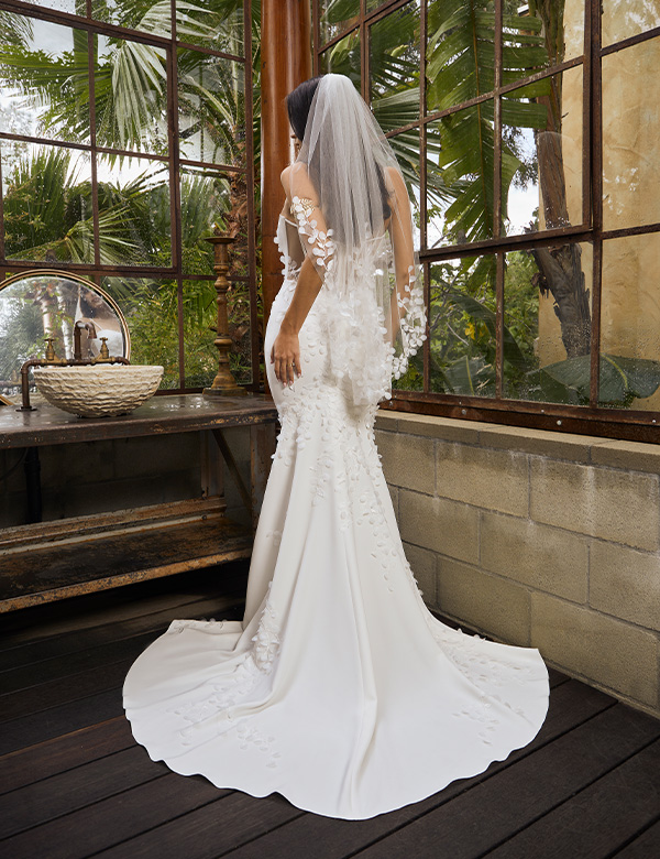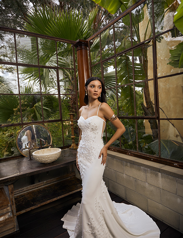 Ariel incarne la sérénité. Conçue pour la mariée à l’esprit libre, Ariel est fabriquée à partir de satin mat extensible,d’une doublure extensible pour plus de confort, et enfin d’une dentelle ornée de pétales 3D ajoutant une touche de charme inspirée de la nature. Le design d’Ariel témoigne d’une beauté intemporelle, avec un décolleté en cœur flatteur.Ariel offre également de la polyvalence avec des bretelles spaghetti amovibles, permettant aux mariées de personnaliser leur look. Ses accessoires supplémentaires comprennent un voile assorti et une cape proposés séparément. Disponible en : Ivoire/Nude/Ivoire