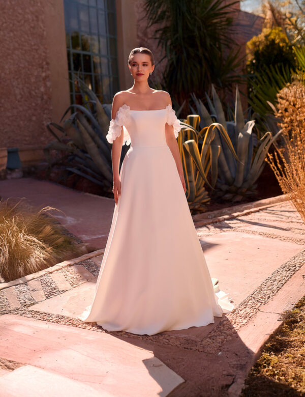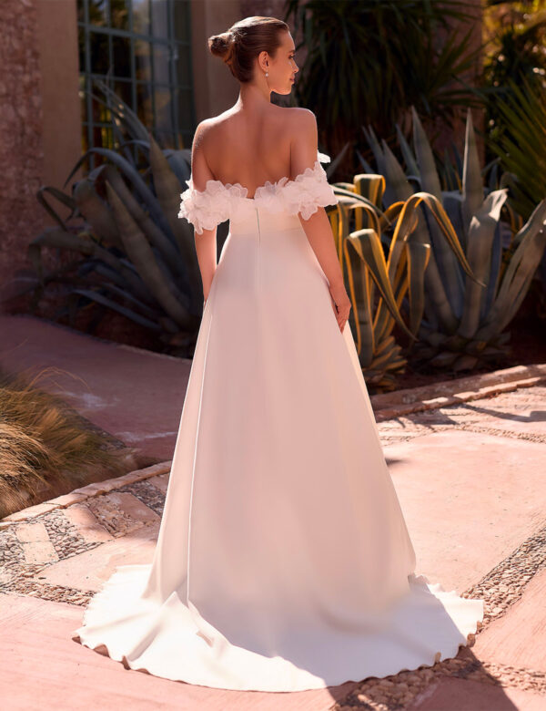 BERYL est une robe de mariée trapèze, fabriquée avec de la mousseline et de la dentelle de haute qualité. Cette robe de mariée moderne est sans manches et comporte des bretelles sensuelles sur le devant et col en dos droit. Toutes les robes de mariée Bianco Evento sont soigneusement conçues dans l’UE et fabriquées dans l’un de nos propres sites de production.