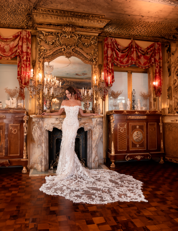 Plongez dans l’élégance éblouissante avec la robe de mariée Farrah de la marque renommée Randy Fenoli. Cette création marie le raffinement d’un bustier à la beauté incroyable de la dentelle avec ses fleurs en 3D et ses cascades de perles. La silhouette sirène flatteuse incarne un style moderne et classique à la fois. Une robe de mariée qui capture l’essence de l’élégance et du charme, tout en reflétant la passion pour la mode nuptiale et le désir d’un style mariée exceptionnel. Possibilité d’enlever les manches.